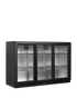 A premium triple door back bar fridge. A versatile fan assisted cooler great for cooling beer, cider, wine or soft drinks. With LED lighting as standard helps to keep your energy bill down, there are also wine shelves available if required.