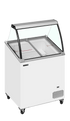 The IC201SCE + CANOPY features a curved glass canopy and angled sliding lids with locks for optimal product visibility and security. Perfect for branding, it offers storage under baskets, a digital thermometer, and castors with brakes for easy mobility. With a climate class 5 rating, it excels in high performance even in warm environments. Say goodbye to stainless Napoli pans – this unit accepts plastic Napoli size tubs.