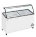 The IC501SCE + CANOPY features a curved glass canopy and angled sliding lids with locks for optimal product visibility and security. Perfect for branding, it offers storage under baskets, a digital thermometer, and castors with brakes for easy mobility. With a climate class 5 rating, it excels in high performance even in warm environments. Say goodbye to stainless Napoli pans – this unit accepts plastic Napoli size tubs.